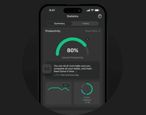 Productive's detailed statistics — streak histories, completion rates, calendar views, week-by-week trends — are locked behind the Pro plan. On the free tier, you get basic progress views. Kabit gives you clean, visual analytics as part of the core experience, with habit calendars and performance summaries available without a paywall.